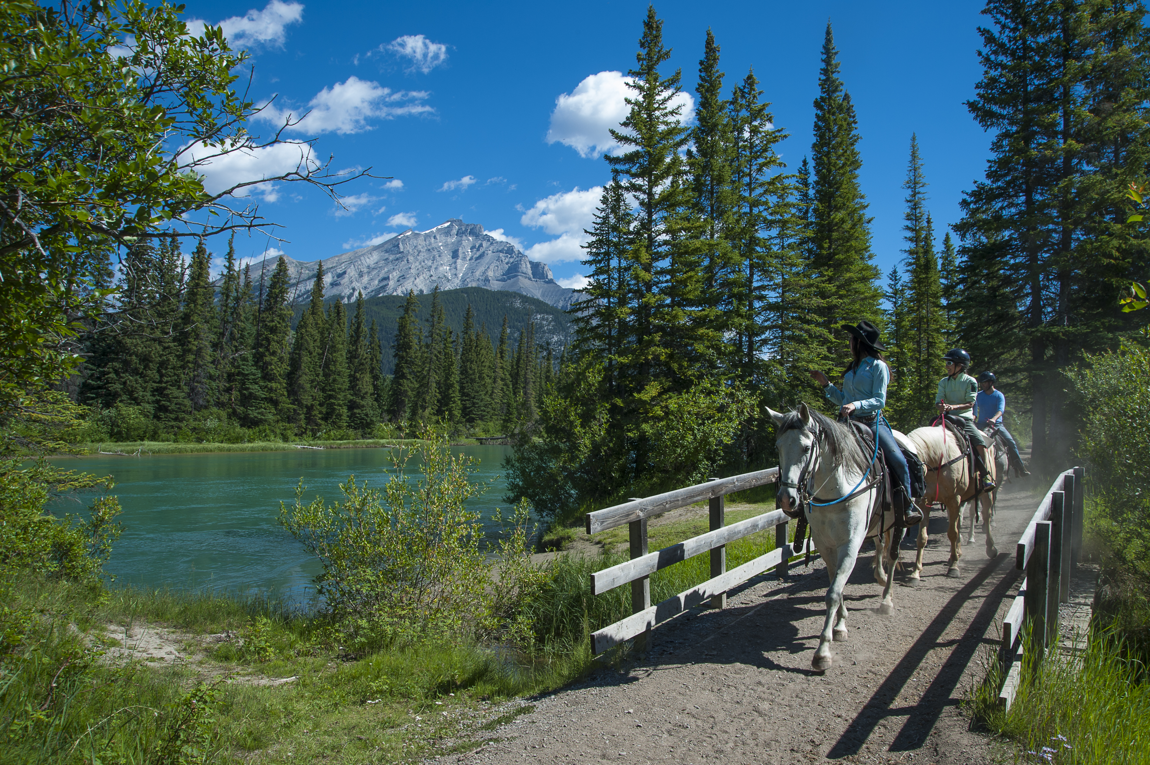 Combo Package: raft along the thrilling Horseshoe Canyon section of the Bow River, then saddle up for a scenic 1 hour Bow River horseback ride in Banff.